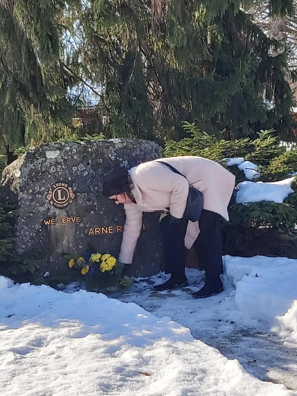 Eilisen lauantain keväisen auringonpaisteen loisteessa kävi pieni mutta sitäkin kunnioittavampi lions-joukko seinäjokelaissyntyisen Arne Ritarin muistomerkillä laskemassa kukkalaitteen hänen 120-vuotissyntymäpäivän kunniaksi.
